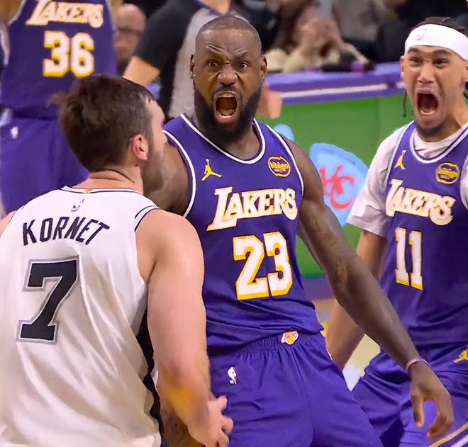 北京时间12月11日,NBA杯1/4决赛,湖人惨败马刺。这场比赛还剩19天就年满41岁的勒布朗-詹姆斯已经打得非常出色,他追身大帽福克斯,他隔扣身高2.16米的科内特,他是场上最闪耀的巨星,但湖人却一度落后马刺24分,詹姆斯19+15+8+3帽湖人无缘杯赛半决赛。